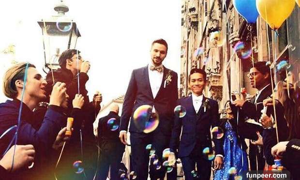 今年年初,泰國捷運上的一張偷拍照曾經引起網路上的軒然大波,一對跨國籍的同志情侶在座位上自然地牽手,被放上網後他們的照片卻引起了正反的論戰,其中泰國模特兒公司的創意總監蒙德(Naparuj MondKaendi)更是不斷被說醜陋、噁心,但他跟交往兩年的德國男友托斯頓(ThorstenMid)走過了這些嚴厲的指控,兩人終於在上個月修成正果。