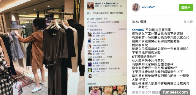 對此,她晚間在instagram解釋為了工作去找衣服而非逛街,並表示:「不知道是怎麼回事,但我是為了工作而去找衣服不是逛街