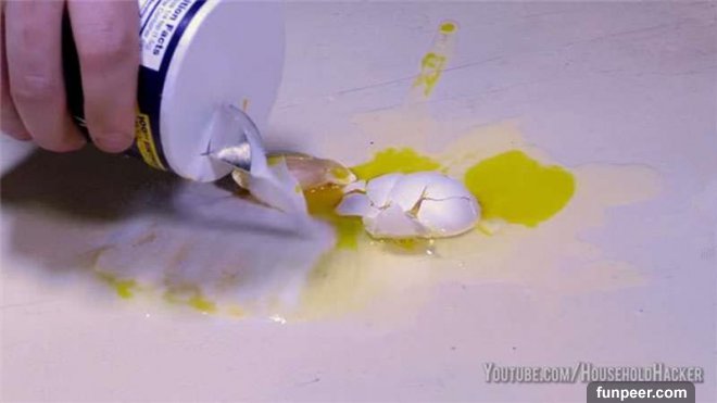 via-bomb01▼2.摔碎的雞蛋很難清理。只要在碎雞蛋上灑一些食鹽,10~15分鐘後用廚房紙巾擦掉,輕輕鬆鬆完全擦乾淨。