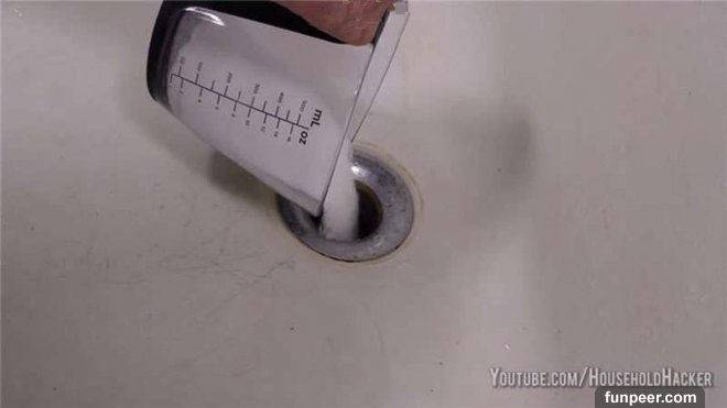 ▼7.排水孔堵塞,將食鹽與蘇打粉混合,攪拌均勻倒進去,然後倒些白醋。15分鐘後再倒一鍋熱水,排水孔馬上順暢起來。