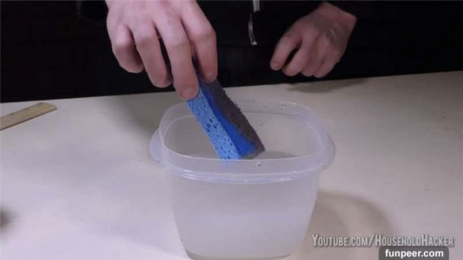 ▼5.海綿刷使用一段時間後會變髒。將它泡在食鹽水中待一晚,第二天就能變乾淨。
