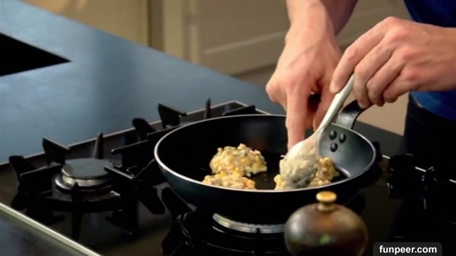 他把玉米罐頭倒進麵粉裡,打蛋下鍋煎2分鐘後,滴上檸檬汁的完美成品讓網友瘋狂喊:超想吃!