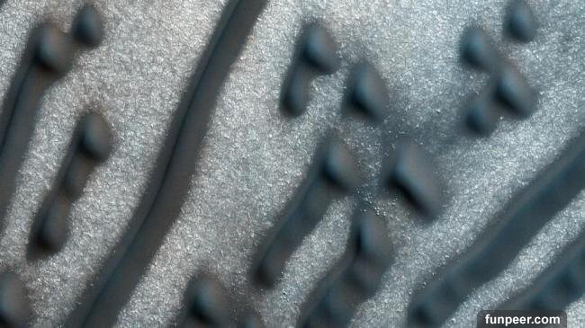 NASA 日前公布的火星沙丘照片,其分布竟看似有摩斯密碼 Morse code 的點狀、條狀分布,難道火星上真有生物且跟人類有共同的溝通方式?