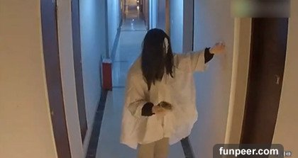 沒想到神秘人發現自己被識破後,還「變裝」成女鬼,戴假髮,配上白色面具,穿著怪異白袍和紅高跟鞋,兩眼盯著監視器...令人毛骨悚然!