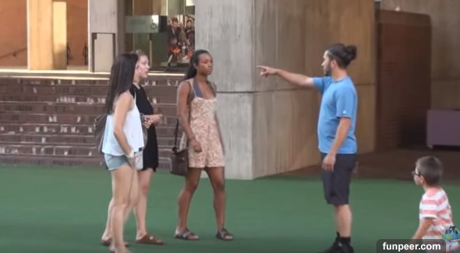一名男子對走在路上的女人說:「快看!妳後面的女人美極了!」