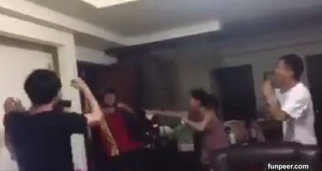 這群人在外送員打開門時「瘋狂扭動身體」想惡整他,結果外送員的「超機靈反應」讓他們笑到倒地!