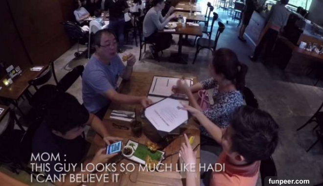 於是他跟哥哥串通好,他假裝成陌生人,然後默默地坐在隔壁桌,看看爸媽有什麼反應......