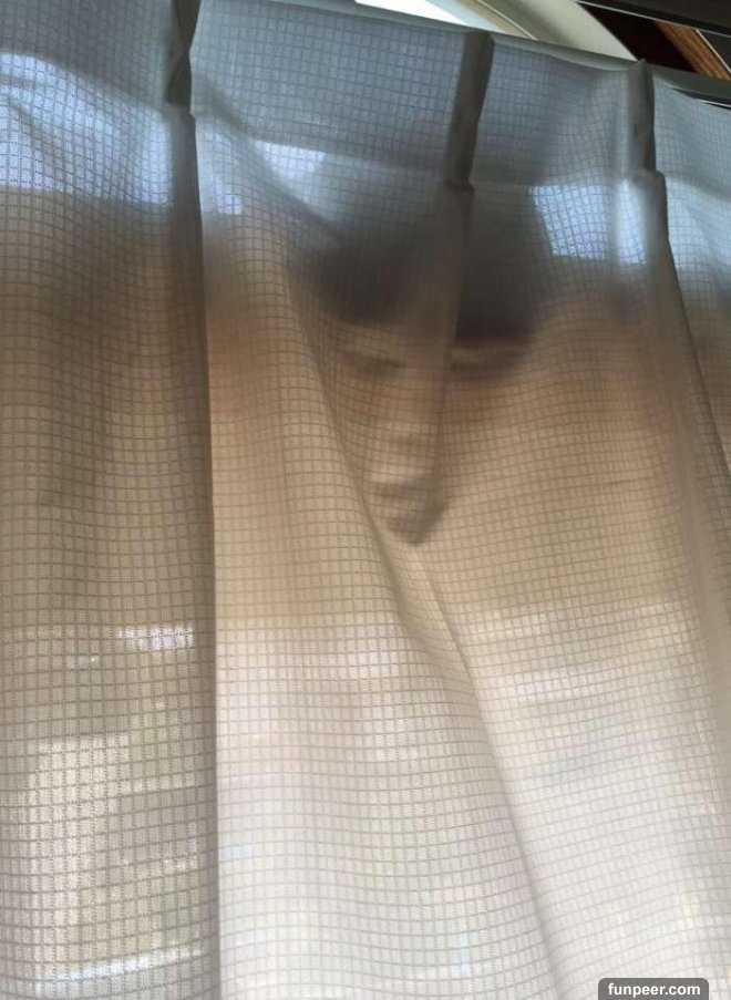但是網友回過神來才發現,這其實只是窗簾的皺褶而已...但還是越想越毛阿,這顆人頭彷彿就從窗外探進來的阿,這樣叫人家晚上怎麼敢回家啦!![]()