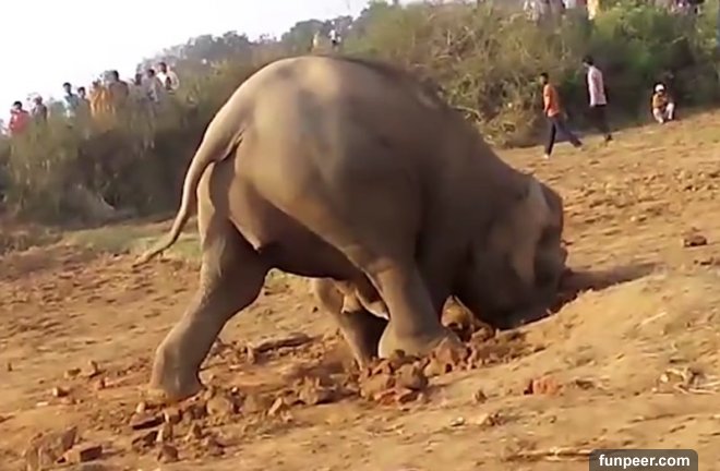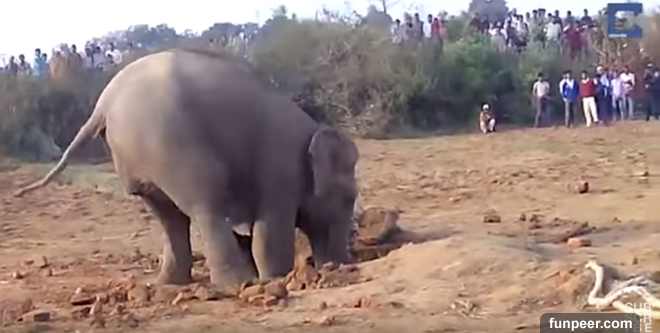 一頭大象媽媽咆哮挖地了11個小時,讓村民都驚嚇不已!但靠近一看卻發現...
