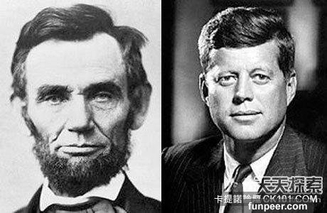 例如,兩人先後相距100年當選美國總統(林肯於1860年,甘迺迪在1960年),兩人的繼任者都是名為Johnson的南方人,這兩個Johnson的出生年月相距100年(安德魯1808,林登1908)。兩名刺客的出生年月也相距一百年(布斯1839,奧斯瓦爾德1939),而且兩人都是在即將受審之前死亡。
