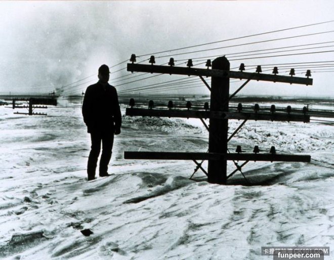 1966年3月,美國中西區的北達科他州出現百年難得一見的大暴雪,積雪達3米左右。民眾站在被雪淹沒的電線杆旁。
