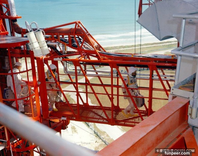 這是1967年1月27日,阿波羅1號的3名宇航員正在登機的畫面。之後阿波羅1號發射失敗,3名宇航員全部遇難。