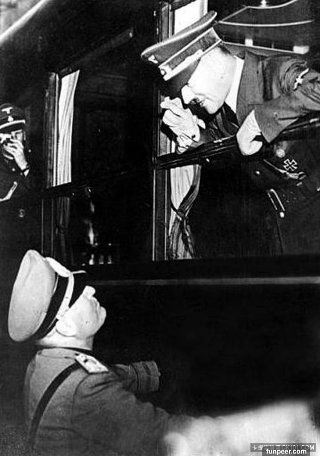 希特勒訪問義大利離開時,墨索裡到火車站為其送行,火車開動前,希特勒探出視窗與墨索里尼交談。