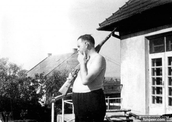 這個是納粹黨衛軍軍官阿蒙·高斯,《辛德勒的名單》中那個納粹軍官原型。1944年波蘭。