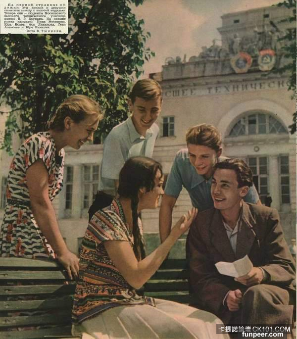 蘇聯時期在宣傳中使用婦女照片大致可以分為塑造英雄主義和抒情展示兩個階段。第一個階段持續到50年代中期,那個時候照片展示的主角是運動員,共青團員或蘇聯女戰士等。1953年斯大林逝世,蘇聯進入了“解凍時期”,各種團體如雨後春筍般的湧現出來,文藝的表現也進入了一個新階段。