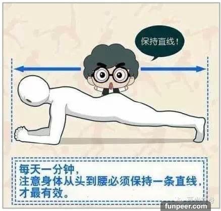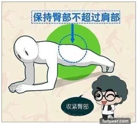 其實,正確的平板支撐姿勢不光要求核心部位的穩定性要好,還需要全身所有關節的共同參與。一旦平板支撐者的技術變形,超出關節的正常活動範圍,關節就會受到擠壓、擰轉、錯位,勞損與創傷也就不可避免。因而,正確的技術是參加這項運動的基本要求。平板支撐的四個要點