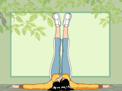 9、平躺,雙腿併攏舉起,雙手握住雙腿,腰部慢慢挺起,一直到雙腿壓倒頭頂,重複20次。