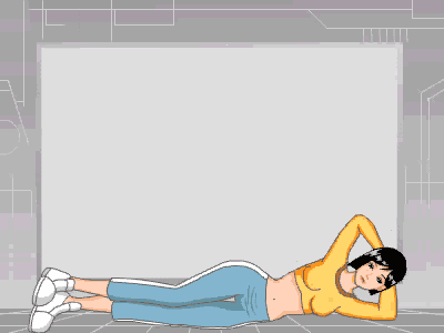 4、雙腳並齊,側躺在地毯上,雙手抱頭,然後身體側起與地面約45度時再回落側身狀態,10次後,換方向側起。