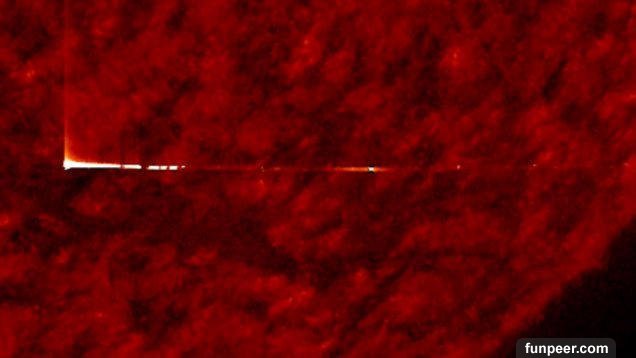 大部分的科學家都會說太陽是氫、鎂跟其他元素所組成,但一位火星研究家做了一項發現可能證明不是這麼一回事!NASA的太陽和太陽圈探測器(SOHO)拍到了一張照片顯示太陽開啟大門讓母艦進入或出來?!YouTube外星獵人TheWatcher252發現了一個不明飛行物體穿梭太陽裡面。