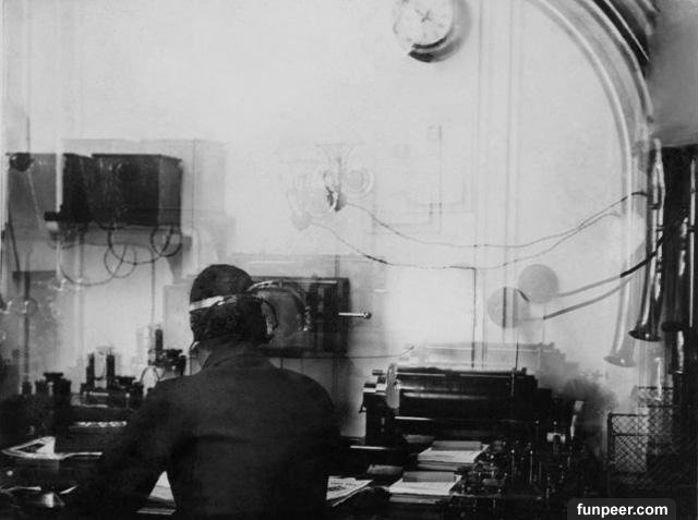 ▲船上名為Marconi Room的地方,無線電通訊操作員Harold Bride正在工作。