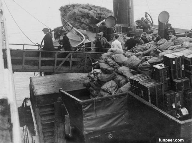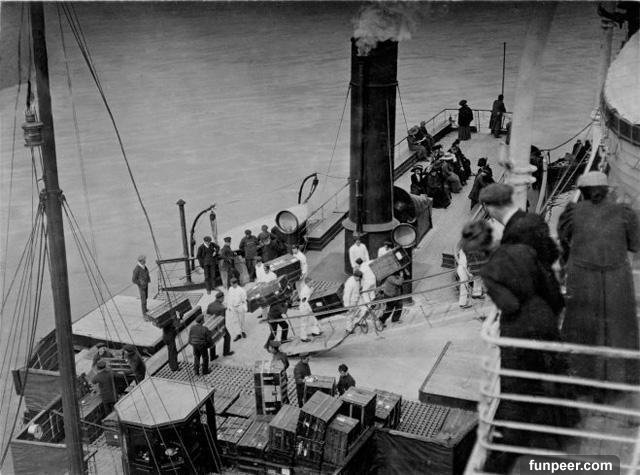 以下便是Browne神父下船之前所拍的鐵達尼號上的照片。(行李正運上鐵達尼號)