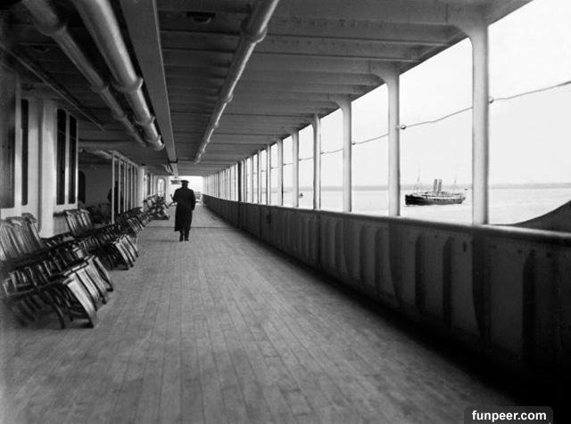 ▲鐵達尼號的散步甲板,此時已經離開了南安普敦。