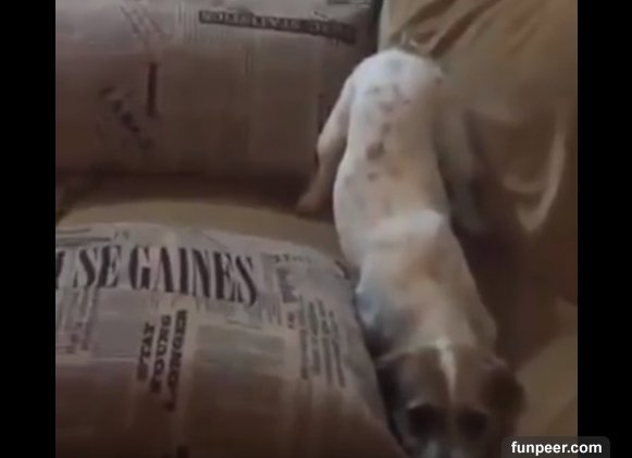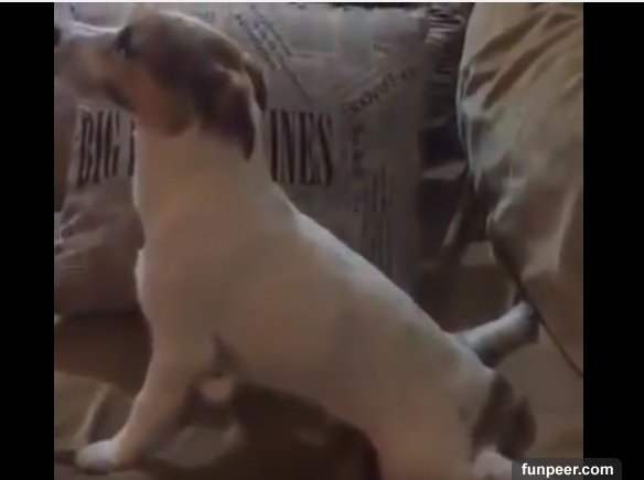 狗狗竟然也嚇得躲進抱枕後,這舉動讓主人一秒噴笑!看來狗狗也有認真看哦!