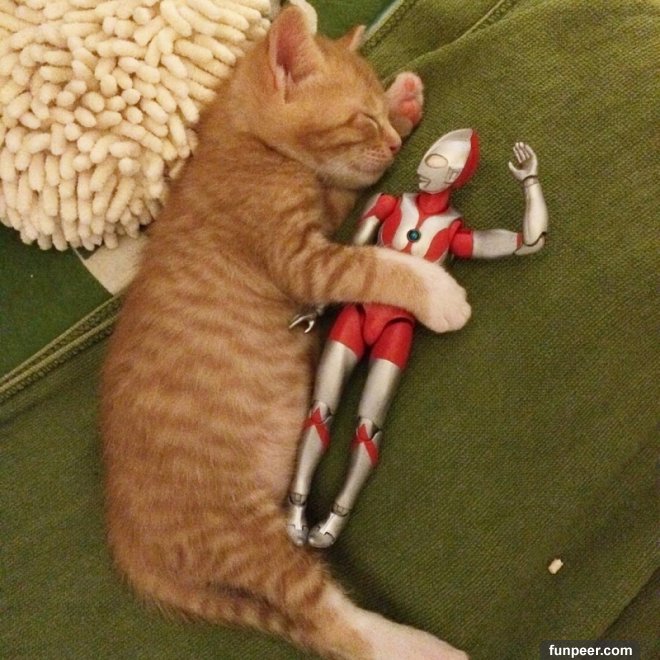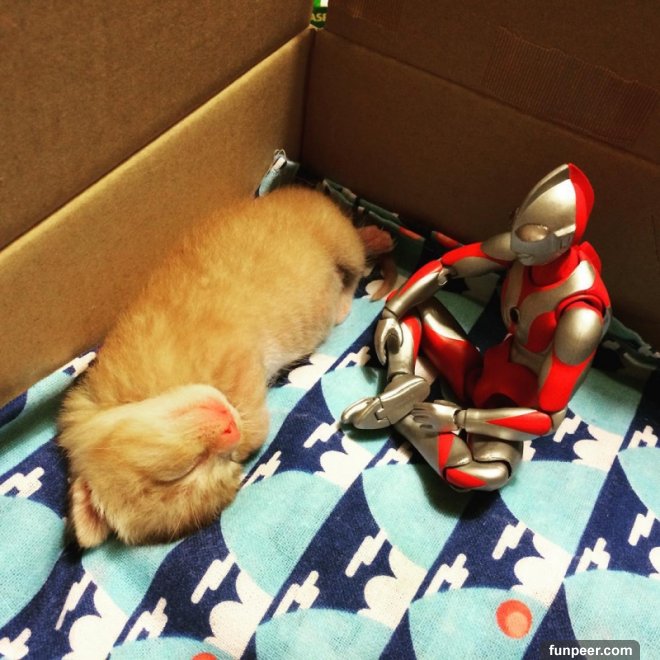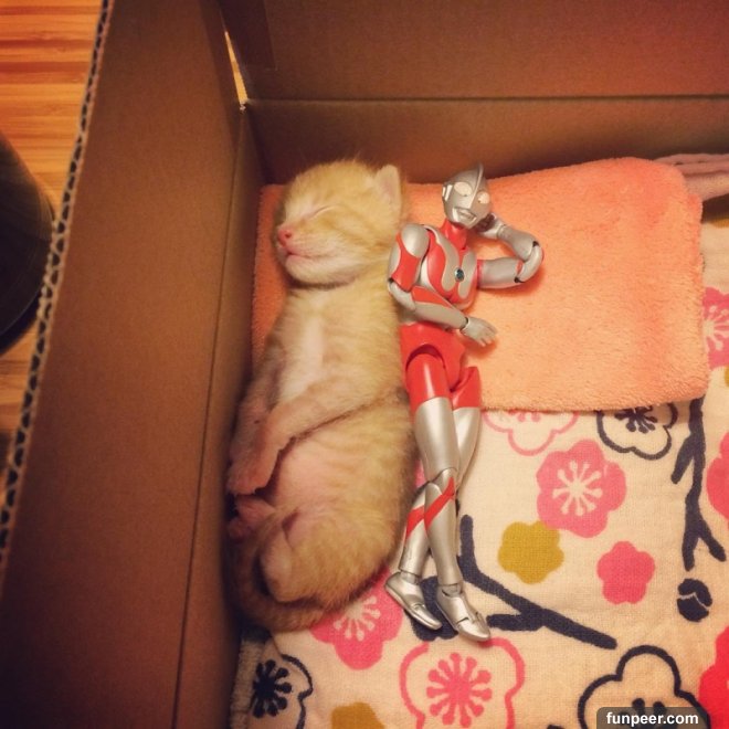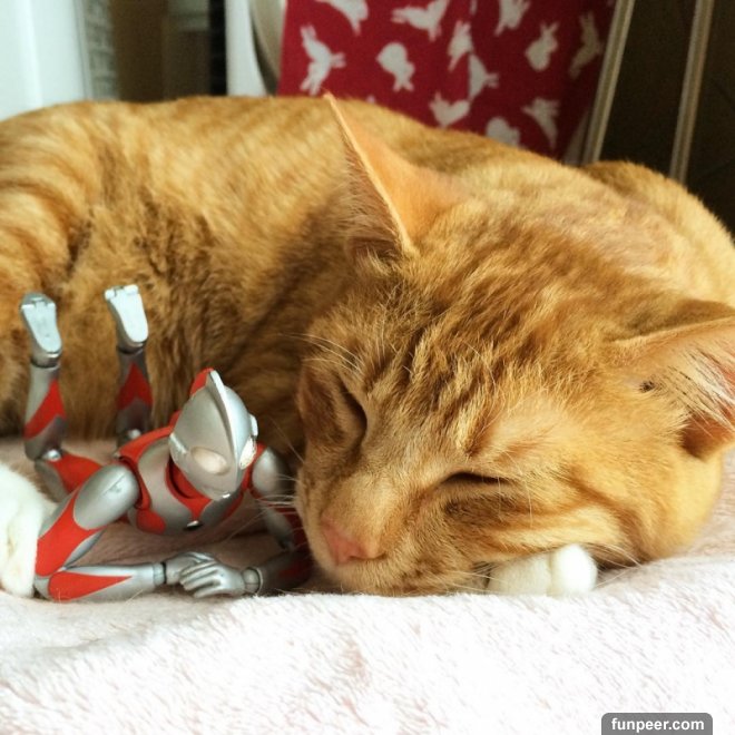 你看~Koma睡到露出微笑,都是因為奧特曼大大的安心守護啊~