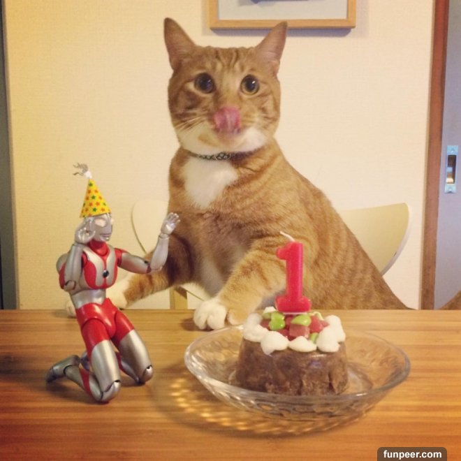 而前一陣子,在9月份Koma過了一歲生日(依據撿到的日期),當然奧特曼絕對不會缺席啦!