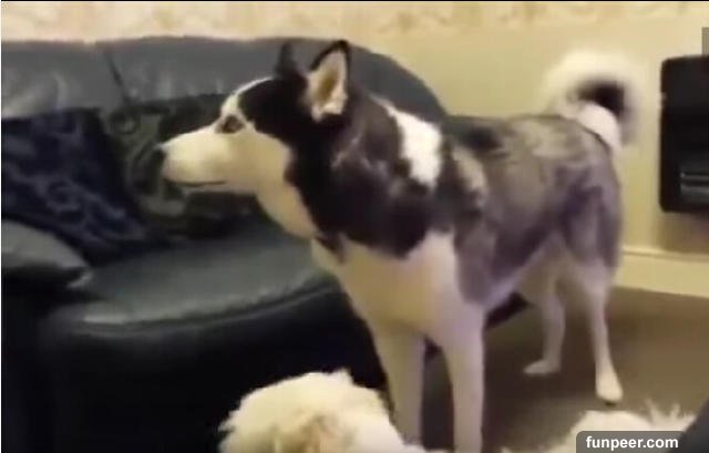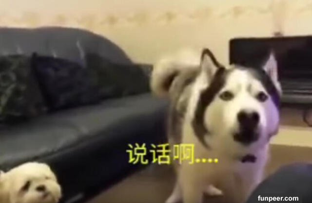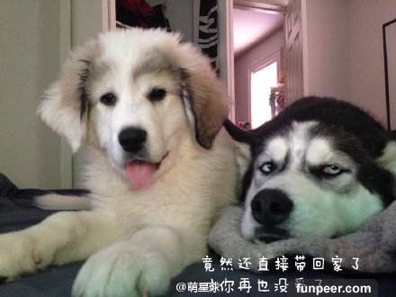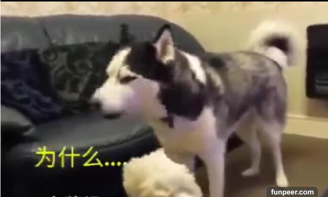 主人又帶了一隻狗狗回來,家裡面的哈士奇嚴重的不服,在質問主人,為什麼,有了它之後,還要帶其它的狗回來。
