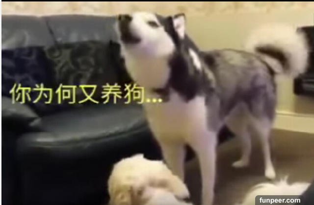 主人帶回新狗,「哈士奇」怕自己失寵,哭個不停!![]()