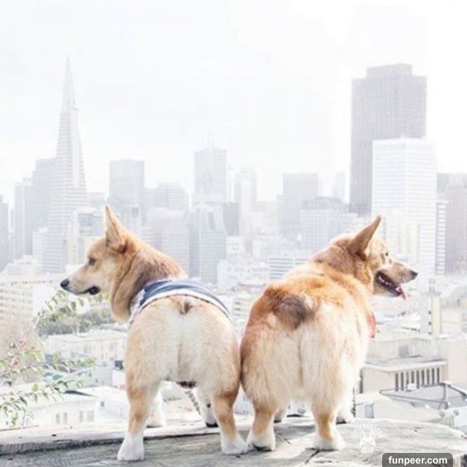 ▼兩隻柯基一起眺望城市風景的霸氣(X)萌呆(O)背影~