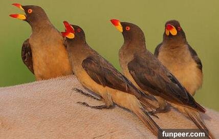 不過這次有這些小鳥來當清潔人員,牠自然一動也不動的站在那邊讓他們幫忙了