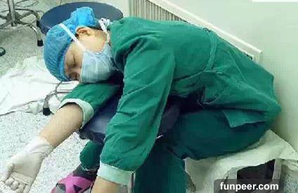 【第六張】▶一名護士小姑娘利用兩台手術的短暫間隔時間,坐著睡著了】