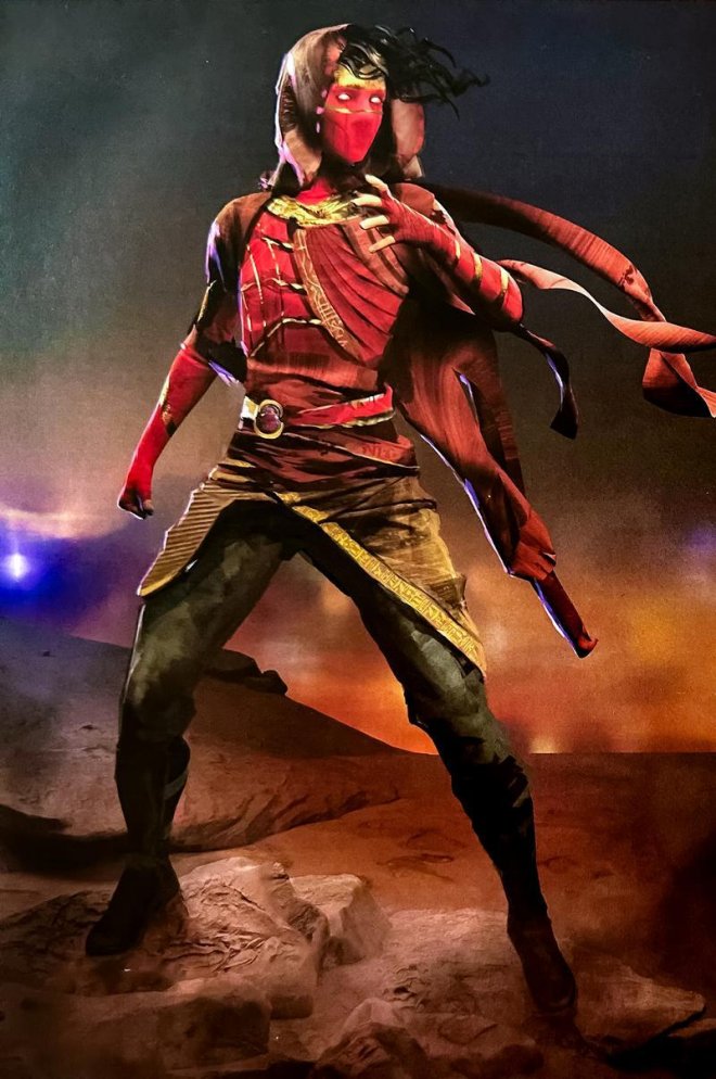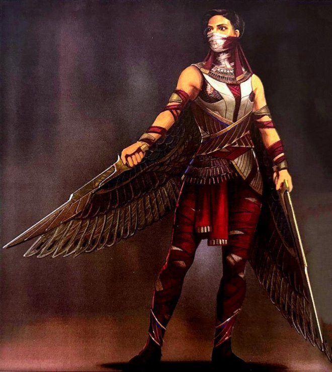 "So, as I was playing with different masks, I did one that has a Mr. Knight feel to it. We were lucky enough to have a plethora of Egyptian lore and references to draw from to give Scarlet Scarab that unique and authentic feel."