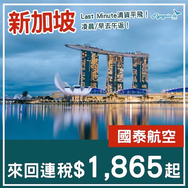 【新加坡】Last Minute清貨平飛!國泰航空來回新加坡連稅$1,865起!4至5月指定日子出發