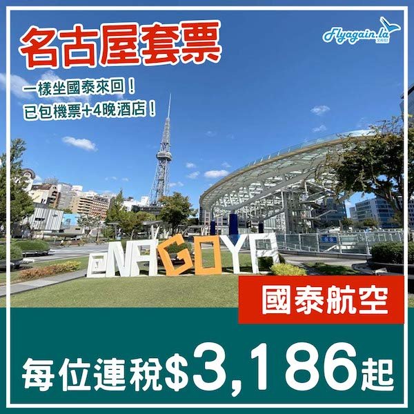 國泰今次優惠仲有名古屋(https://flyagain.la/126212/),一樣book埋酒店就更抵啦!
