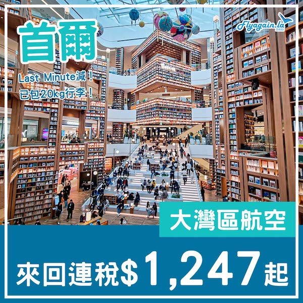 【首爾】Last Minute勁抵!大灣區航空來回首爾連稅$1,247起,包20kg行李!11月至12月指定日子出發