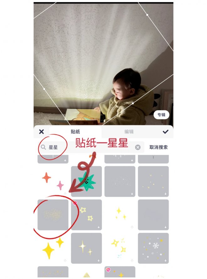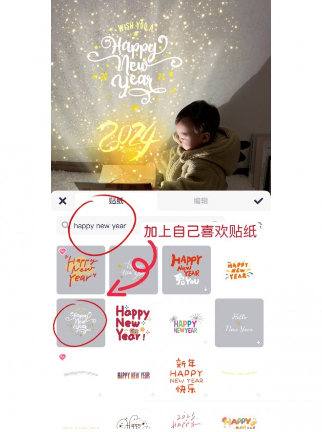 把光球放到想要的位置上再加入自己喜歡的新年貼紙後就完成啦~是不是很簡單!