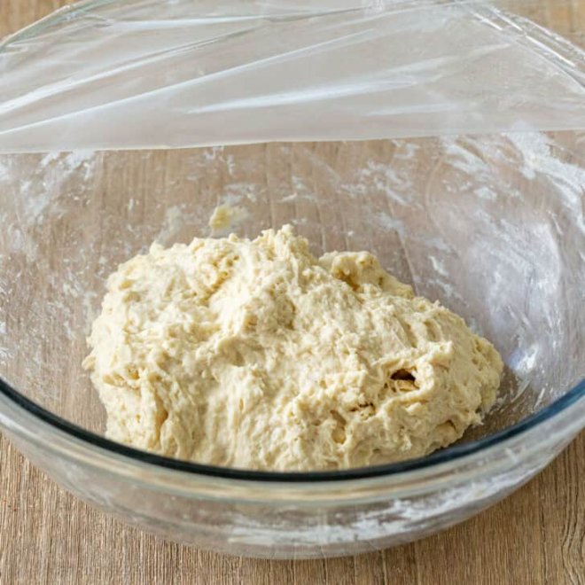 Pour the water mixture over your flour and stir to combine with a spatula, then knead by hand for 2 minutes. Cover and let rise 4-5 hours at room temperature.