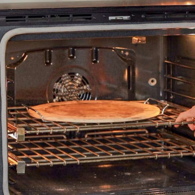 Add white pizza sauce or red pizza sauce, cheese, and toppings. Give the pizza a shake over your pizza peel to make sure it’s not sticking then immediately slide it from your pizza peel onto the preheated pizza stone and bake at 550˚F for 8-10 minutes.Tools for Homemade PizzaThe right tools will make the pizza dough making the process even easier. It will also make you look like a pizza ninja to transfer your pizza from a pizza peel onto your hot pizza stone.