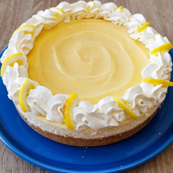 Spread Lemon Curd over the surface. Pipe a generous amount of whipped cream around the edge of the cake or decorate it to your liking. Garnish with thin lemon slices. Refrigerate until ready to serve.Can I Make Cheesecake Without a Water Bath?While a water bath is the best way to ensure your cheesecake doesn’t crack, you can bake this lemon cheesecake without one. Follow the baking instructions from our Blueberry Cheesecake recipe for our tried-and-true method for a perfect cheesecake without a water bath