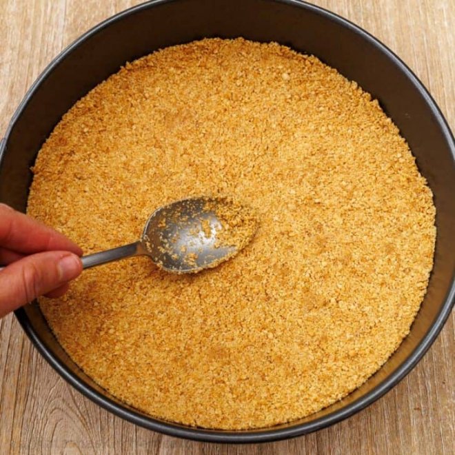 Graham Cracker Crust – all you need are graham cracker crumbs, melted butter, and a bit of sugar to make a cheesecake crust.