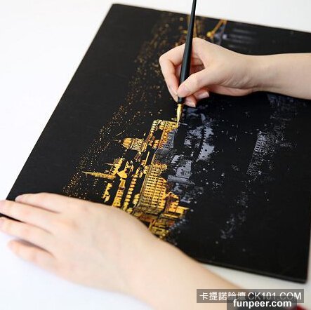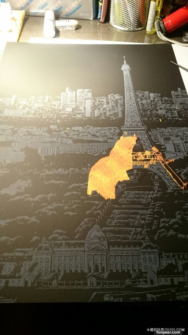 美麗的金色黑色巴黎鐵塔線條,立刻網路上查,原來...是要依照線條來刮啊……!!!!!