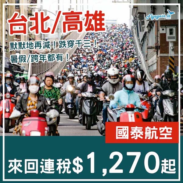 【台灣】默默地再降價!跌穿千三啦!國泰航空來回台北/高雄連稅$1,270起!12月31日或之前出發