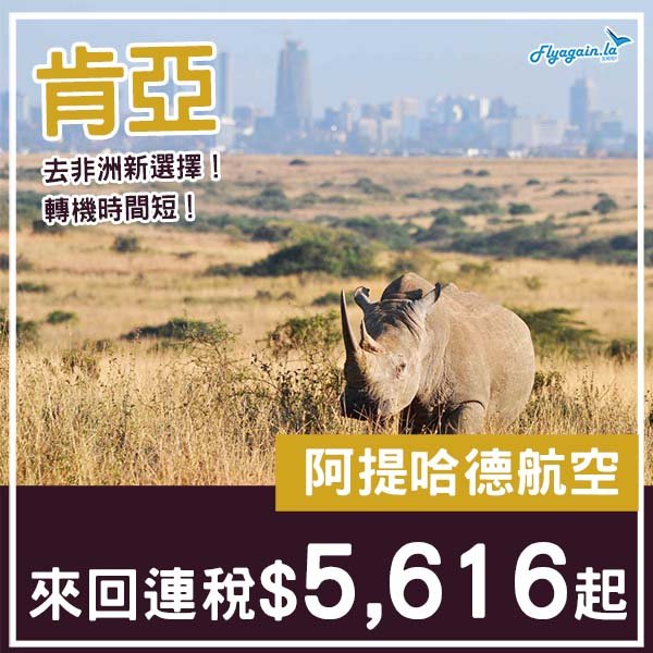【肯亞】六千有找去非洲!阿提哈德航空來回內羅比連稅$5,616起!11月至2026年5月指定日子出發