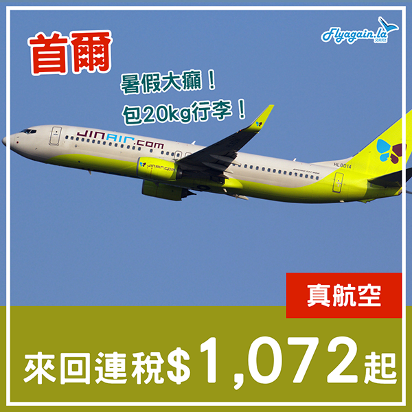 【首爾】痴L線!8月暑假劈到底!真航空來回連稅$1,072起!包20kg行李