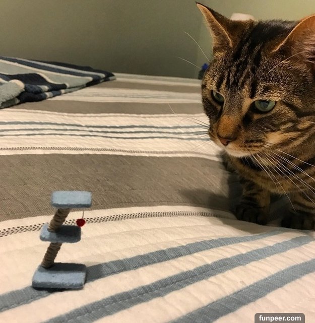 (圖/翻攝reddit)許多家裡有養寵物的朋友,都會花錢買玩具讓愛犬、愛貓們玩得盡興又開心,不過如果是在網路上血拚的話,眼睛可能要睜大些,否則連寵物都會鄙視你!美國有位貓奴,花了60美金(約台幣1900台幣)網購一個三層樓的貓跳台,但是收到商品後,不僅他傻眼,連「朕」都呆住!據《蘋果日報》報導,美國有位網友在Amazon上開心準備替愛貓添購新玩具,經過一番挑選之下,看中一款三層樓高「貓咪跳台」,而且上頭還掛了一個垂吊物,讓貓咪們在跳台上玩耍時,可以多一點樂趣,為了愛貓的開心,貓奴們可說是花錢不手軟。然而,當該名網友收到貨物後,不僅沒有喜悅的心情,有的只是傻住不知道該怎麼辦的想法,因為這個花了他60美元的跳台,總高度居然只有4.5公分高,連愛貓趴在床上,看著眼前這「超級迷你」的跳台,都愣在那裡,雙眼直盯著它,眼神中透露著「這啥鬼?」的疑惑感。▼貓咪一副「這啥鬼?」(圖/翻攝reddit)