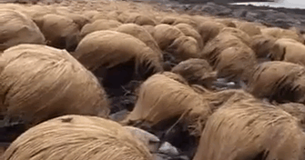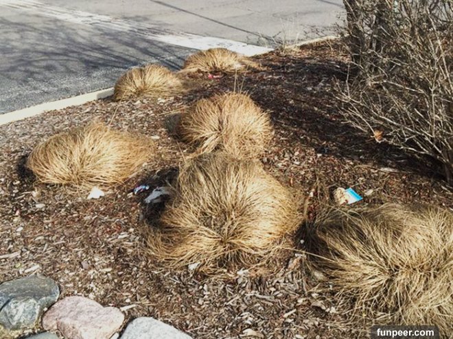▼ 滿滿的看似「川普假髮」般的稻草就這樣躺在地上。