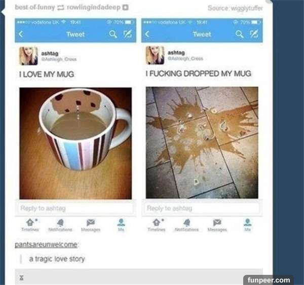 ▼左:我愛我的馬克杯。 右:我TMD摔了我的馬克杯!
